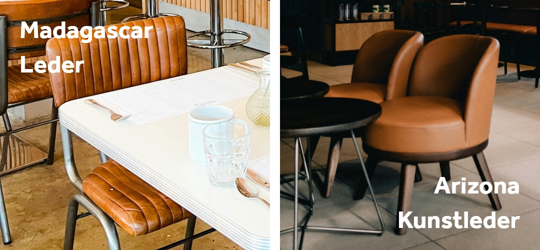 Ledersoort Madagascar en kunstleder Arizona zijn met hun overeenkomende kleurenpalet heel goed samen te gebruiken.